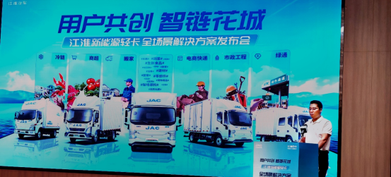 此次发布的江淮新能源轻卡全场景解决方案,基于正向研发的纯电专属平台,通过对电池、电机、电控技术的深度整合,构建ES、EV、EK三大体系产品矩阵,覆盖冷链、快递快运、商超配送、市政工程等八大细分场景,精准匹配城际运输、城配、冷链、绿通等多场景需求,打破了绿色物流场景限制,助力物流运输绿色高效发展。