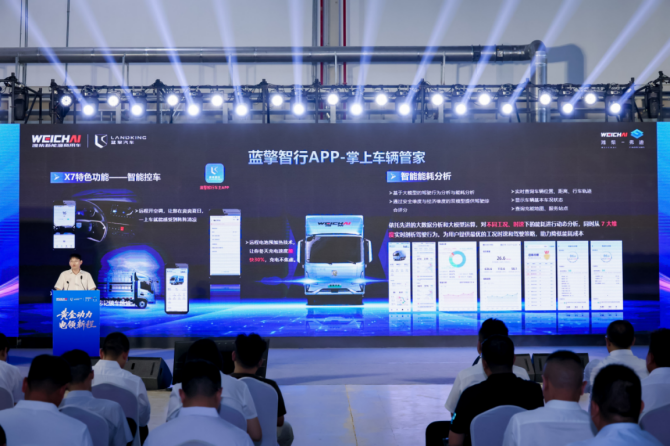 在各界来宾共同见证下,6位嘉宾共同开启潍柴蓝擎X7新一代轻卡全国发布仪式。潍柴蓝擎X7新一代轻卡将凭借其超长续航、超高装载、强力性能、舒适驾乘、高可靠性和贴心服务,为城市物流提供高效、零碳、智能化的绿色物流解决方案。