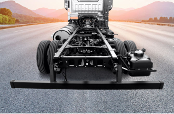 领航大G-F28T气体机轻卡车架采用750L高强钢,180mm直通大梁,较610材质强度提升30%以上,在重载情况下依然稳如泰山。行业首配6.0T NPR一体精铸后桥,较4.5T冲焊桥强度提升8.6%;后悬架采用8+6多片簧,厚度15.7cm,刚度提升31%,承载能力强毋庸置疑,商超满载、快递运输、城乡散杂重载,统统“稳如泰山”。