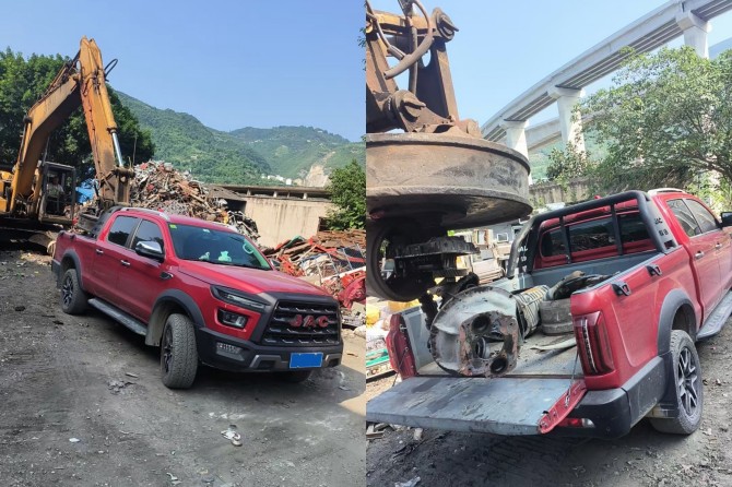 2024年6月,江淮T8光荣退役。凭借其稳定的质量与出色的保值率,魏总再次将信任票投给江淮皮卡——一辆悍途四驱手动挡驶入他的生活。新伙伴很快证明价值。悍途皮卡动力更强,轮胎抓地面积比日系越野车的还宽一手指。这关键一寸在去年冬天化作神助攻——魏总的六桥车在湖北深陷雪地,悍途挂上四驱如夔门石壁般稳稳发力,直接拽出险境。