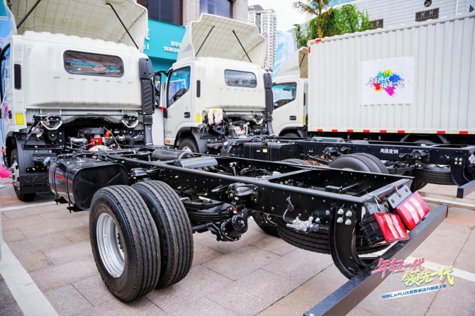 轻量却不妥协承载,领跑L9 PLUS版智威动力的底气源于其“钢筋铁骨”,180直通式高强钢车架采用局部双层强化设计,搭配850大开间结构,大幅提升抗侧倾能力;匹配4/7+6超厚板簧,配合铸铁一体式加厚吊耳,标配5T后桥可选7.2T大后桥,标载运输稳若磐石,重载也不塌腰。