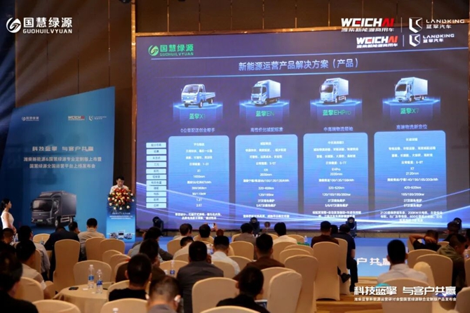 本次发布会的核心亮点,当属潍柴蓝擎X7、潍柴蓝擎 EHpro国慧绿源联合定制版纯电动轻卡的重磅亮相。不同于传统产品,该定制版车型以“场景需求”为原点,将潍柴领先的电动技术与国慧绿源的运营实践深度融合,构建起 “动力、续航、智能、安全” 四大核心优势。