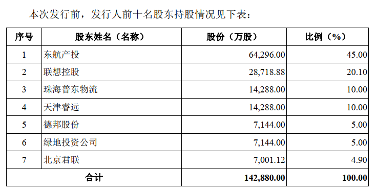 东航物流混改后股东组成,图片来源:东航物流招股书