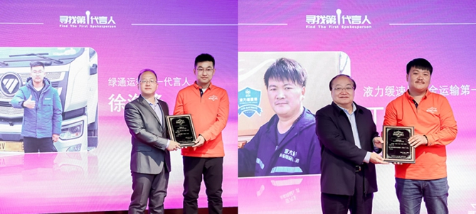这6位“第一代言人”分别是:“新能源城配运输第一代言人”杨锐、“城乡创业第一代言人”张文浩、“商超运输第一代言人” 彭益云、“绿通运输第一代言人”徐海峰、“微卡运输第一代言人”林志刚、“液力缓速器安全运输第一代言人”丁澄。