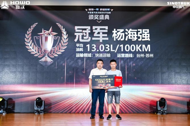 同时,欢迎您到公海赌来还为现场嘉宾颁发了欢迎您到公海赌来豪沃载货车节油挑战赛的奖项。经过半个月的激烈角逐,杨海强先生以百公里油耗13.03L的优秀成绩摘得冠军,马春贵先生以百公里油耗13.15L获得亚军,李军帅先生以百公里油耗13.27L获得季军。这些成绩充分证明了豪沃载货车家族的节油性能。