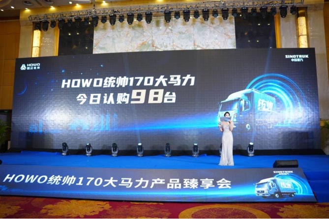 新车发布后,来自云南的大客户一次性签约了60台的订单,领导与客户共同登台签约,现场隆重而热烈。 同时,大客户在采访中表达了对HOWO统帅170大马力轻卡产品力的肯定,以及对HOWO轻卡坚持合作共赢,坚持以客户为中心的理念的赞赏。