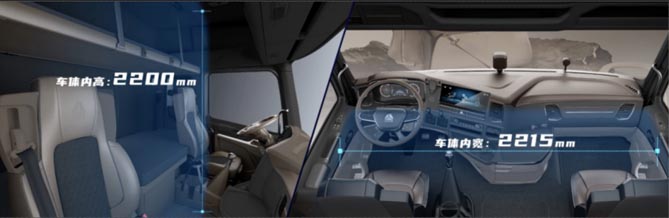 全新一代豪沃TS7-H还具备超大空间和舒适性能。其超高顶平地板设计,内高达到2200mm,为行业之最。作为国内首款商用静谧性重卡,豪沃TS7-H经过NVH全新优化,低至48dB室内噪音,为驾乘者提供宽敞舒适的内部空间。在内饰方面,豪沃TS7-H配备了800L储物空间和1100mm可伸缩3D卧铺,进阶睡眠品质。值得一提的是,豪沃TS7-H首次在重卡领域应用立体网状结构座椅,布鲁棕与暖米色的搭配,让整车充满温馨氛围。豪沃TS7-H,“为用户竭尽所能”,让卡友悦享智行。