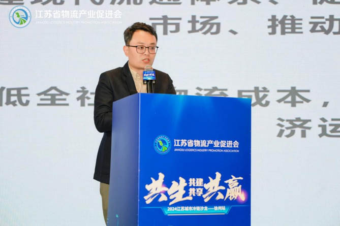江苏省物流促进会副秘书长兼园区专委会秘书长渠慎秋,促进会冷链专委会秘书长李琦,江苏省物流与供应链研究院副院长井蕾,中国供销冷链数字园区平台运营总监顾春国,万纬冷链华东区总经理王龙,京东零售生鲜及预制菜业务部品类运营负责人王灵敏,南京众彩供应链管理有限公司董事长钟翔,徐州万纬冷链科技有限公司总经理李志敏等嘉宾,还围绕冷链物流高效、高质、低碳等相关话题,进行了发言。