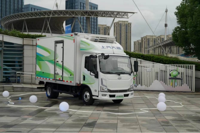 活动现场展示的上汽轻卡超越H300城配运输车,是高效运输装备中的代表。这款车型不仅具备良好的保温性能,其动力设计也为高效率运输提供了有力保障。上汽轻卡超越H300冷藏车更是经典的运输装备。