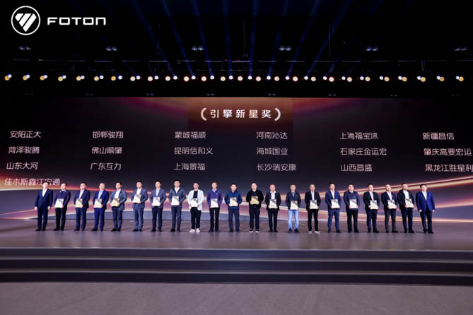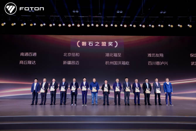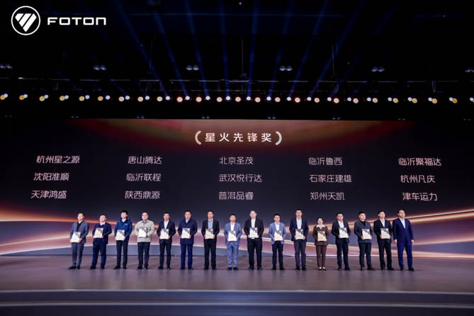 一季度,福田汽车取得的成绩离不开广大合作伙伴的精诚合作与支持。为表彰先进,福田汽车常务副总经理鹿政华主持颁奖仪式,向优秀经销商代表分别颁发了引擎新星奖、磐石之盟奖、星火先锋奖,这些奖项不仅是福田汽车对合作伙伴往昔卓越贡献的诚挚褒奖,更是福田汽车对双方未来继续携手共进、开拓创新,在激烈市场竞争中缔造更多辉煌的深切期许。
