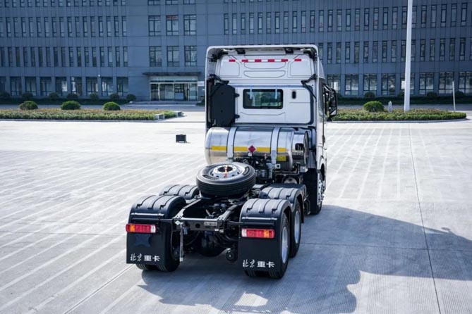 北京重卡LNG牵引车搭配福康15升燃气机+采埃孚自动挡、1500升超大气瓶、行业领先EBI智能制动系统,北京重卡LNG牵引车硬核来袭。