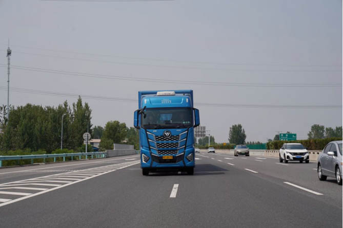 “云巅穿越之旅”第一天,从天津出发,走京港澳高速转入京昆高速,途径石家庄、太原、临汾等地,最后达到西安,累计穿越行程长达1200公里。虽然当天行驶路线处于平原地区,对欧曼星辉燃气自动挡重卡的行驶效率、节气水平是更大的考验。无需担心的是,在燃气超级动力链的赋能下,580马力大动力、2600N·m大扭矩、99.7%的行业第一传动效率以及领先节气技术加持下,能够保证整车起步、加速、超车更有力、更高效、更节气,满足用户高效运输、快速盈利的需求。