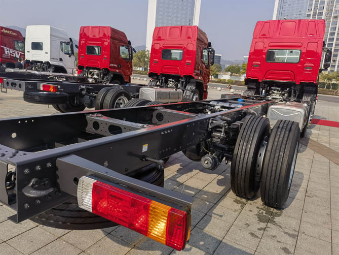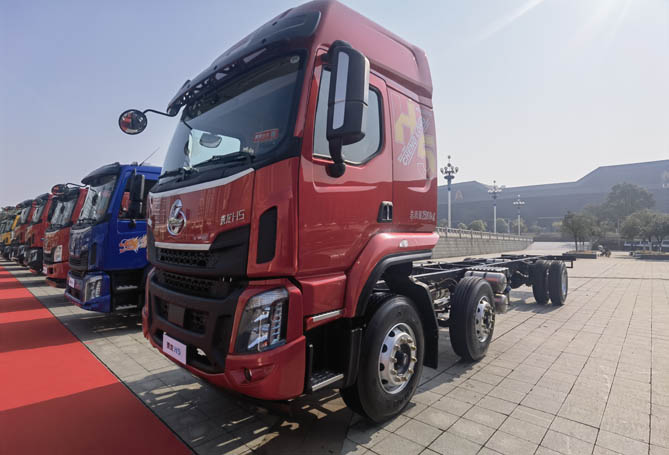 加之该车采用6×2形式,底盘自重6.5吨,在车辆货总重25吨的情况下,可拉18.5吨货。车辆配备600升铝制油箱,续航可达1200公里以上。整车加宽制动器配置,给全车运行再提供安全保障。