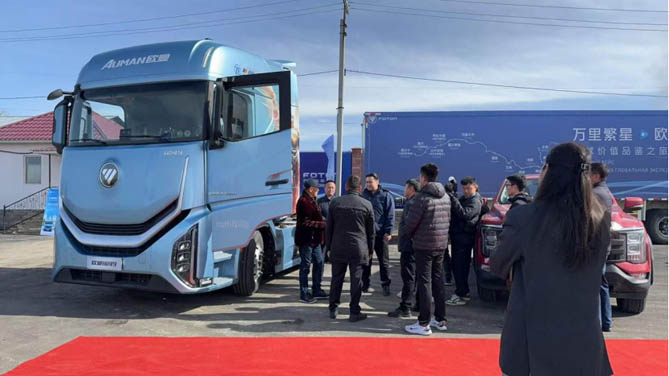 而且,欧曼银河 9 与欧曼银河 7 搭载的超级动力链 5.0,保证动力输出澎湃不已。同时,凭借整车 VCU,欧曼银河重卡实现了发动机 ECU、变速箱 TCU 之间的深度数据交互,将整车与动力链的协同工作状态调整到最佳,尽显降本增效的实力,为用户节省大量运营成本,同时极大提高了运输效率,完美契合全领域、全功能、全场景的运输需求。即使在哈萨克斯坦这样地域广袤、路况复杂的国家,欧曼银河重卡也能胜任各种运输场景。