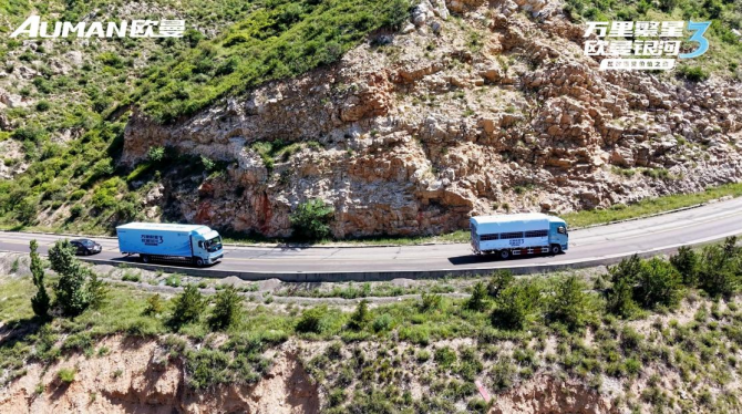 从乌兰察布到长沙,虽以平原高速为主,但也不可避免地会遇到弯道、水泥路、坡道等各种复杂路况的考验。而欧曼银河 3 在诸多路段展现出了令人赞叹的性能。当车队穿越太行山脉时,那连绵起伏的山峦与蜿蜒曲折的山路给运输带来了极大的挑战。然而,欧曼银河 3 搭载的超级动力链 5.0,由福田康明斯 A7 发动机与采埃孚变速箱组成,迸发出 350 马力的澎湃动力与 1400N・m 的峰值扭矩,瞬态响应提升 30%,加速潜力提升 16%,爬坡能力提升 20%,轻松征服了陡峭的山道。