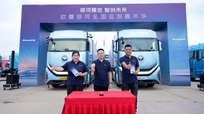 欧曼事业部营销公司客户价值开发部高级经理朱红旭在致辞中表示“欧曼银河系列产品承载的不只是货物,更是人们对高效、安全、绿色物流的期待;它驶向的不仅是远方,更是一个智慧物流新时代的曙光!这场巡展,将带大家从科技解析到亲身体验,从个性方案到长效服务,让大家看得见品质、算得清收益、摸得着安心,全方面感受欧曼银河系列产品的硬核实力。”