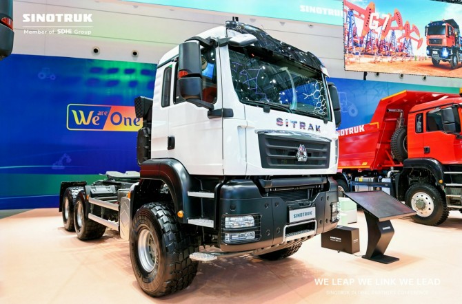 该车型采用大马力发动机、高可靠性分动器及双级减速驱动桥,大大提升车辆的动力传输效率和运行稳定性,确保在各种恶劣工况下都能高效作业,彻底打破场景局限。同时,汕德卡6X6 全驱牵引车采用高离地间隙设计,具备更优秀的通过性,赋予了车辆极强的越野能力,能够轻松跨越沟壑、石块等障碍物。而多级减振悬架的应用,则有效缓冲路面颠簸,保证车辆高承载力和高稳定性的同时,进一步延长装备使用寿命。