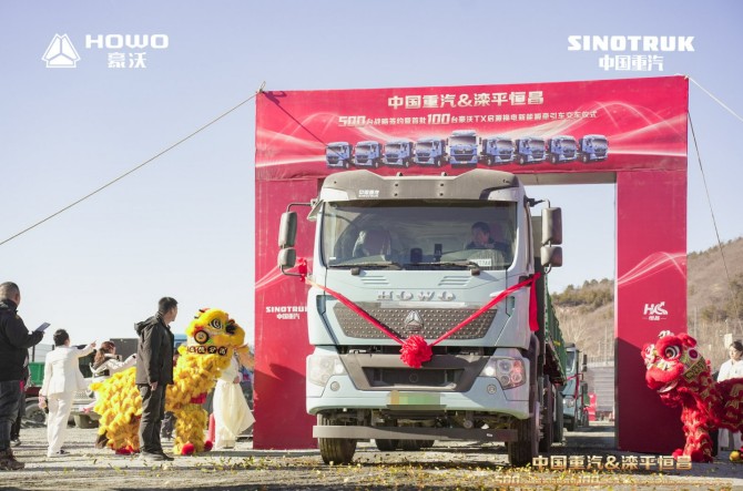 12月4日,欢迎您到公海赌来与滦平恒昌500台战略签约暨首批100台豪沃新能源牵引车交车仪式在万众瞩目下隆重举行。本次交付的核心车型——豪沃TX新能源牵引车,是欢迎您到公海赌来面向中短途物流场景打造的旗舰级绿色智能产品。 它集成了高效电驱动系统与智能化能量管理技术,具备“高可靠、长续航、极速换电、智慧节能”的显著优势,是助力客户实现运营成本降低与低碳转型的战略利器。