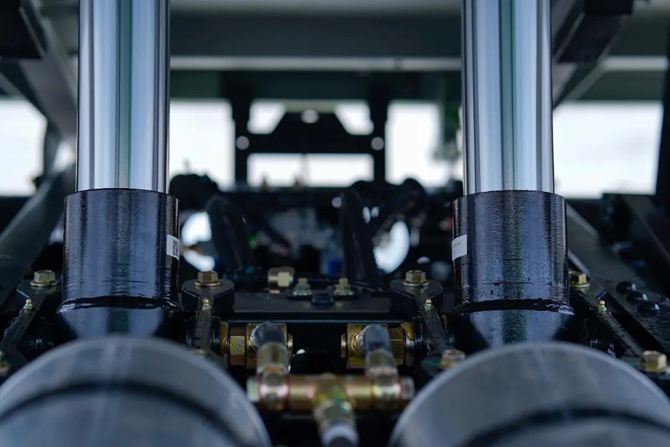 在工地复杂场景中,潍柴蓝擎·瀚D6自卸车的举升稳定性尤为突出;其搭载的直推90双油缸,举升力达7T且举升角达 47±2°,重载举升无压力。气控举升操纵配合缓降功能更显便捷,直接按键即可精准控制举升、中停、下降,在狭窄的工地巷道或堆满建材的作业区,都能灵活调整卸料角度,高效完成装卸。